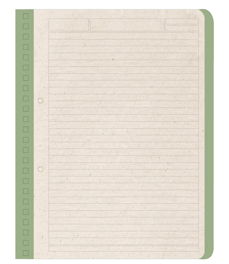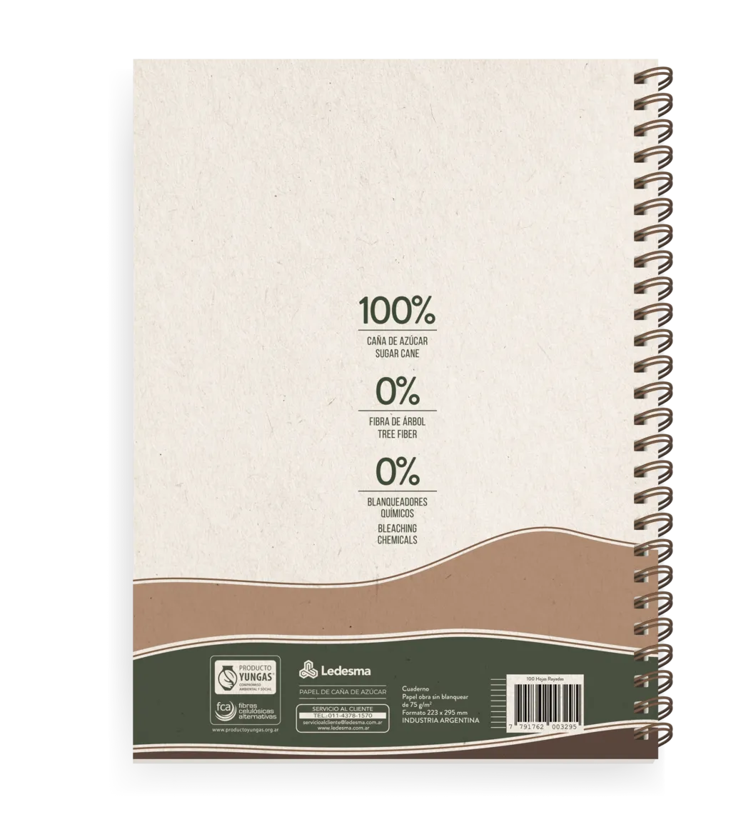 Cuaderno con espiral de tapa dura premium con hojas de papel natural Ledesma Nat. Con margen de color diferenciado a modo de separador para diferentes usos (ejemplo para diferentes materias/temas/tareas etc). Incluye un sobre al final del producto para guardar papeles/anotaciones, anillado color cobre y una regla índice troquelada para señalar hojas en su interior.