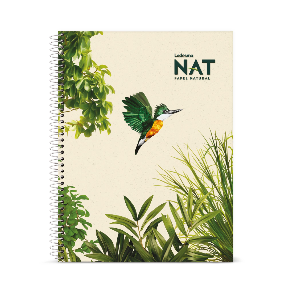 Cuaderno con espiral (3 diseños) Ledesma Nat. Su tapa y contratapa flexible es de Cartulina de caña de azúcar, sin blanqueadores químicos.
